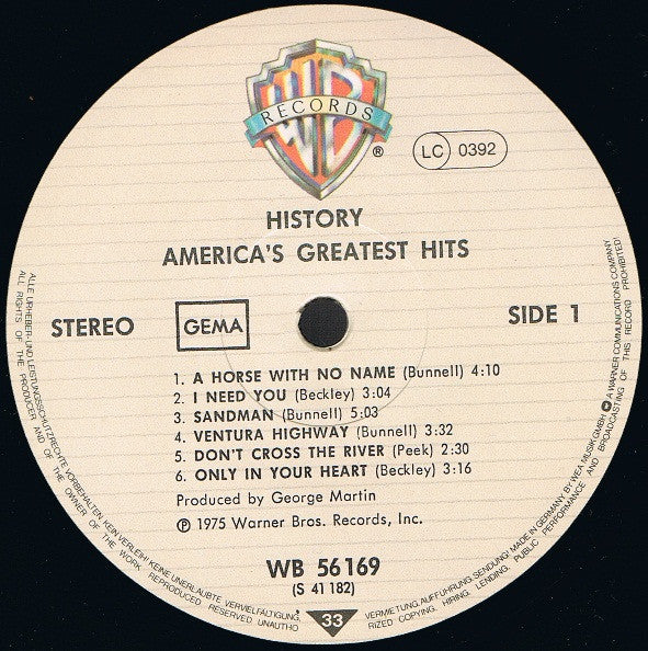 America - History - America's Greatest Hits (LP) (Very Good Plus (VG+))