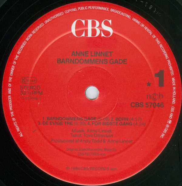 Anne Linnet - Barndommens Gade (LP) (Very Good Plus (VG+))