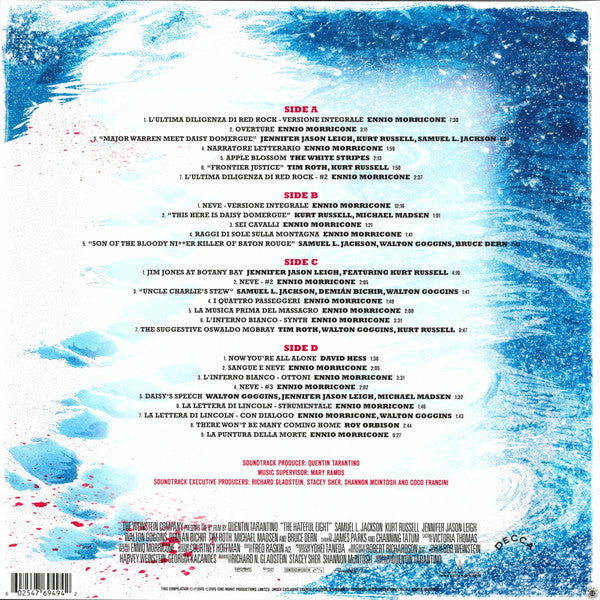 Artist on spine: Morricone / Tarantino. Title on spine: Quentin Tarantino's The Hateful 8. Gatefold release for UK & European markets. Includes poster. Manufactured in Czech Republic.