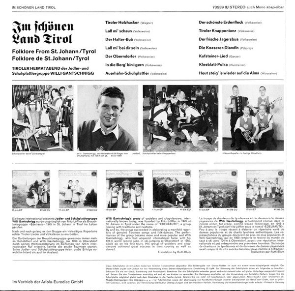 Subtitled: "Folklore From St. Johann/Tirol · Folklore De St. Johann/Tirol" Uncredited Liner Notes in German. Translations in English and French. Printed in Germany.