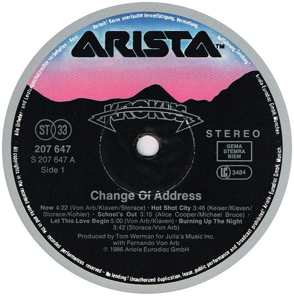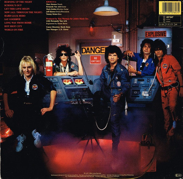 Printed inner sleeve Wrong order of titles on Sleeve backside and Lyrics on Innersleeve All lyrics © 1986 Geffen Music/Warner Tamerlane Publishing Corp./Krokus Music A.G. Except "Schools Out" © 1972 Bizarre Music/Esra Music (BMI) ℗ 1986 Ariola Eurodisc GmbH (on labels) ℗ & © 1986 Arista Records Printed In Germany. Imprimé en Allemagne