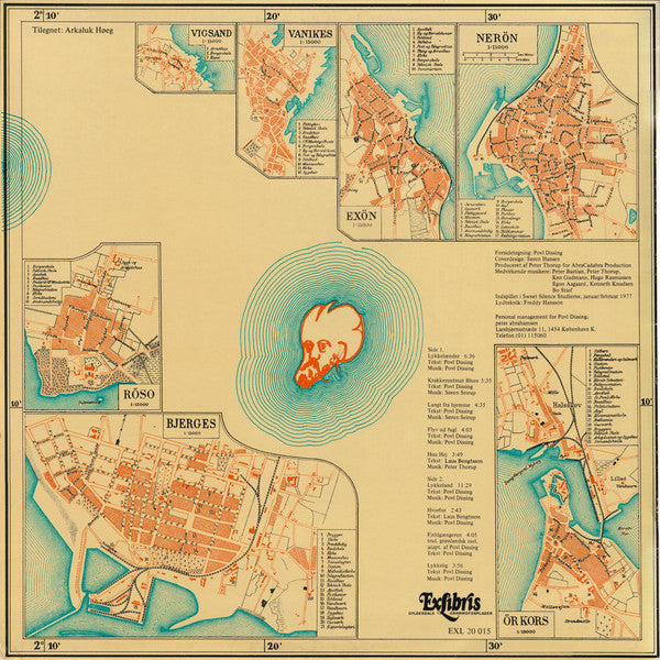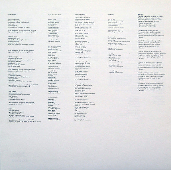 Dedicated to Arkaluk Høeg Produced for AbraCadabra Productions Recorded in Sweet Silence Studios January/February 1977. ℗ 1977. Made in England. Additional lyrics sheet included. Pinched spine at top and bottom. No individual credits for musicians, just "Medvirkende musikere" meaning participating musicians. Runouts are etched.