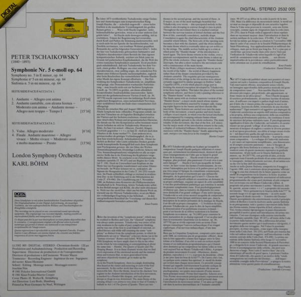 Pyotr Ilyich Tchaikovsky, London Symphony Orchestra, Karl Böhm - Symphonie No.5 (LP) (Very Good Plus (VG+))