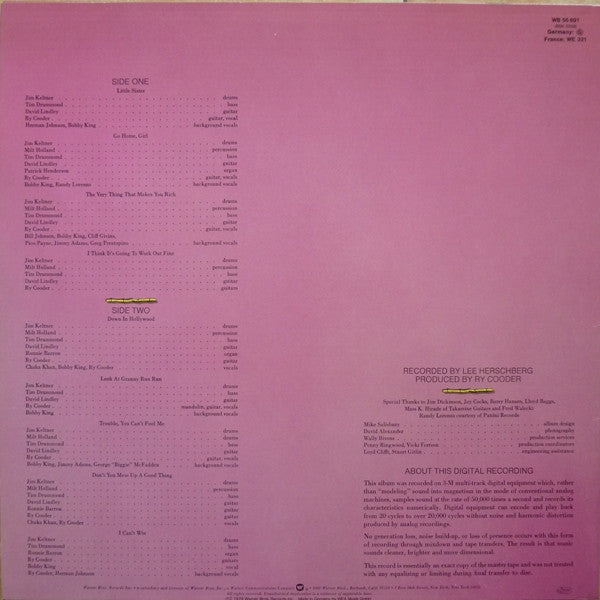 Identical to this release, but with slightly different label artwork. Album digitally recorded on 3-M multi-track digital equipment. back of cover reads: Made in Germany by WEA Musik GmbH