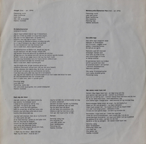 ℗ 1974 Contains printed inner sleeve with lyrics and credits. This version: The inner sleeve is square – unlike [r=2506240 which has rounded corners. Recorded in Quali Sound Studio, Sønderholm near Nibe, from 1 June to 1 November 1974