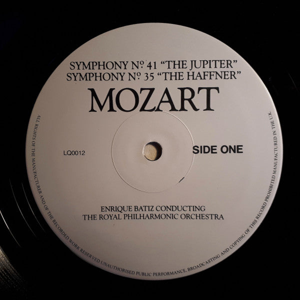 Wolfgang Amadeus Mozart, Royal Philharmonic Orchestra, Enrique Batiz - Symphony N.41 'The Jupiter' & Symphony N.35 'The Haffner' (LP) (Very Good Plus (VG+))